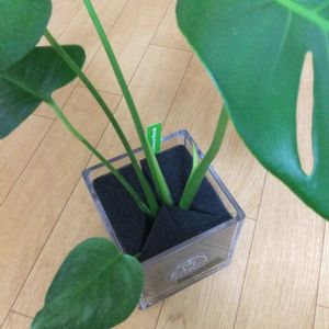 ようこそ我が家へ② 土を使わないテーブルプランツのモンステラさん。既に切れ込みが入った個体が届いたので嬉しい。 こちらも念のため水を少なめに調整。