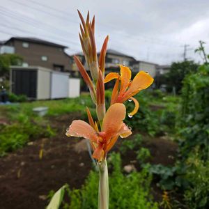 あつー。庭がちょっと鬱蒼としすぎていたので、道路から見える部分を草刈りしつつ、ローズマリーの大枝とかセイタカアワダチソウとかを半分くらい間引き、その他も少し刈り込んだり散らしたりして、少しスッキリさせてきました。切ったローズマリーの枝は倒れやすい花のサポートに活用。(ポールスミザーさんのアイディアを活用) まだまだこれからサルスベリが咲いたり、秋に向けて更に賑やかになっていくから、手を入れておかないとね。 本日の庭の花はカンナ!好きな人は好きだけど、どうでもいい人には全部同じに見える!笑 ちなみに全部違う種類です!笑 あと去年花終わりで50円くらいになっていたので買っておいたセロシア(ノゲイトウ)、こぼれ種から3株芽が出て育っていたので分けて鉢増し。去年のお金が無駄にならなくて良かった。