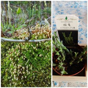 ホウオウゴケの近くでチョロチョロしてるのなんだろう…?手前にあるのはコツボゴケぽいけど奥のヒョロヒョロも徒長したコツボゴケかな?なんかキラキラしてるし…。 ちょっとこの辺り地面見えててみすぼらしいから何か茂ってくれると助かるんだが…頑張って!