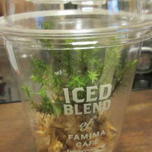 暇だったので、アイスコーヒーのカップに、 水苔植え、してみました。 ファミマのまわし者ではありません‼️