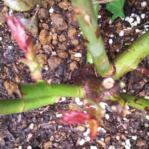 挿し木苗2年目のバラ、クリスティアーナ🌹 根元からどんどん新芽が出てきました❣️ 芽かきをした方が良いのでしょうか⁉️ どなたか教えてください🙏