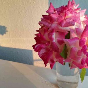 夕方にバラを摘みました 鉢植えですっごい育ってきたのでいったん今咲いているお花を切って花瓶へ。 大きめの鉢への鉢増しうまくいくかな~ すっと鉢から抜けますように