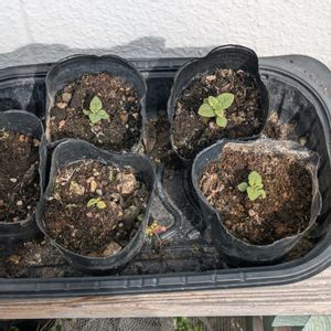 育苗ポットで育て始めてから、レタス、ブロッコリー、紫蘇の芽が出始めました🌱 今のところ、お花は全滅です…😢 やっぱ直接、バラ蒔きの方が向いてるかも😕