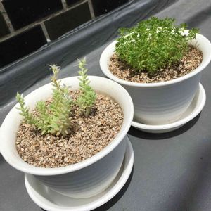手前はHC産のポスティム! うっすらピンク可愛い♡ 奥はDAISO産のセダム! わさわさになるかなー?
