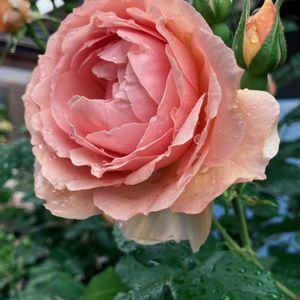 我が家のバラ開花21番目は、ラシャンスの初花。 カップ咲きのサーモンピンク♡のはずだけど、 初めて咲いたこの子はまだコロンとしてない模様。 今井ナーセリーさんの切り花品種。 ラ・シャンスはフランス語で「幸運」を意味し、 縁があって我が家に舞い込んだ幸運のバラです😊🌹