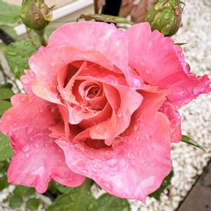 我が家のバラ開花23番目は、ブルーグラビティの初花。 青バラはポルトブルーを狙っていたのですが、品種不明の挿し木で、もしかしたらブルーグラビティかも?という状態のが格安だったのでゲット。 咲かせて正解→白っぽいところに青みがあります🩵 夕暮れ時に撮ったけどうまく青みが撮れないです。。