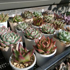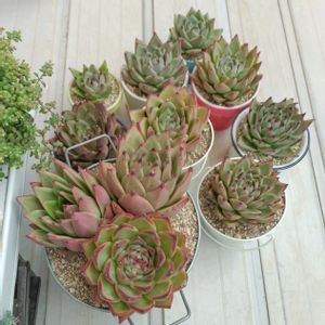 たまには太陽に照らされた多肉たちを☀ 左下のエボニーがいい感じになってきました✨ 小さい苗から育てている初期メン。 この模様が好きなんです😊