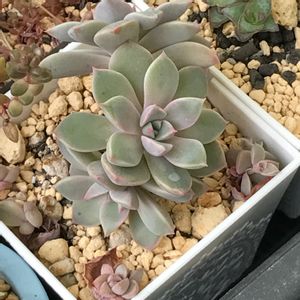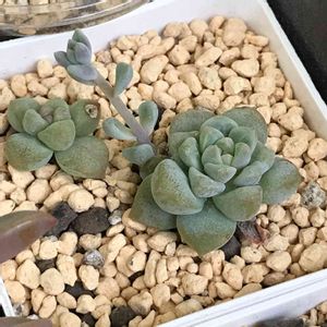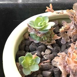 去年徒長しまくりで胴切りしたプリティちゃん、今年はぎゅっと締まってるように見えて可愛いヾ(*´∀`*)ノ 勝手に落ちた葉挿しっ子もひっそり育ってます。