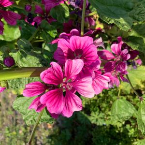 こちらも「タチアオイ」でしょうか? 花びらが5枚あって、桜のお花を大きくしたような形です。🌸🌸🌸 AIさん、お花の名前を教えて下さいませ。🙇🌞