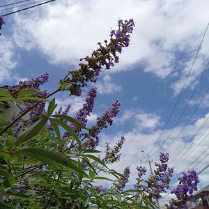 こんにちは🍀 今日は風があり涼しいです😊 セイヨウニンジンボク💜 先週は猛暑で見に行けず、今日は満開過ぎてましたが…️️️空に映えて綺麗なシルエットです(揺れてなかなか撮れず)💜💜
