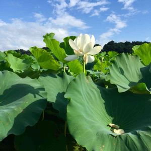ハスの花を見に行ってきました。 ピンクはあまり見られなくて9割白。 つぼみがいーっぱい。 お花はもちろんのこと、 葉がとてもとてもうつくしい✨ 一時的にザーッと降った雨水のしずくが中心にたまっていて、 それもまたキレイでした。 田舎だいすきだ〜!