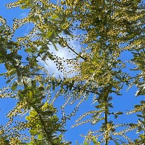 ♡今日のお花♡ ミモザ💛✨✨をもう1枚♬ お願いします♪ いつもの公園に撮りに行った甲斐がありました👌 蕾のつぶつぶ✨が可愛いです😊 青い空と雲も見えて とってもご機嫌です🥰🎶 🏷ちっちゃいものクラブ 付けました♡
