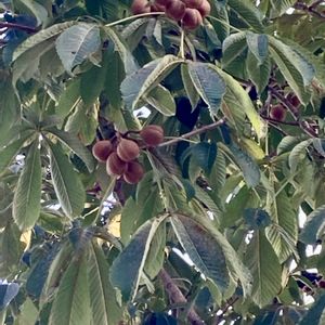 トチノキ こんもり咲いていた5月の花を思い出して、そうだトチノミ👍 1️⃣木の下にはトチノミがたくさん落ちていました。 外側の皮を開くとコロンとした実。 口に入る迄のアクを抜く手間が面倒だと花友さんから聞いていたので、お持ち帰りは少しだけ。 🌰より固そうなピカピカの皮を齧って🐻や🐿️は食べるのかな? アクの強さは学習済みかも😖 2️⃣花の豪華さにふさわしい大きな葉っぱ とち餅、栃煎餅を見つけたら食べてみたい。くせになる味のようですね。