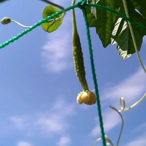 ベランダのグリーンカーテンに実が付き始めました🌱 欲張らず1株2個位の収穫にしようかな😋 今年は用土に油かすを混ぜたらモリモリ成長してくれた🍀