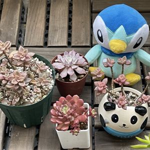 昨日は公式で「多肉植物の日」 だったんですね💦 毎日こんなに 多肉植物と一緒に過ごしているのに 気付かないなんてもー😂ですわ 多肉植物の日🏷️ 11月20日多肉植物の日🏷️ があるので 1日遅れてめんごめんご🏷️ と共に投稿させて頂きます ちなみに3月10日はサボテンの日です 今度は忘れないようにしなくちゃね😅 今日も色んな記念日がありますが 記憶に残ったのが 任天堂の日とか 語呂合わせでイーブイの日 というのがあったので 多肉にイーブイ添えてみました♪ これはポケモンボールが開くと 中がリップクリームになっています 多肉植物は 寄せ植えがゆっくり出来ない時や 元気のない苗を 大きめプランターに植えて 一年経ったものです 置き場所は雨ざらしの東の庭 真夏も遮光無し 雨が続く時だけ 軒下に避難させました 真夏に数個☆になったのもあるけど それ以外は概ね元気で 自然と大きな寄せ植えになっています なんかこんな育て方の方が 私には合ってるような気がします☺️