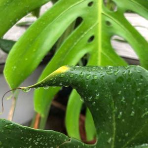 コンクリートの上では40度越え、 さすがのモンステラも猛暑の日光に焼けてしまいました。 😢ごめんねー日陰に行こうね〜