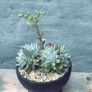 こんばんは🌙😃 【ダドレアグリーニー】の花が咲いたよ~💛レモン色の花🍋 色白な葉との組み合わせが良い😁👍
