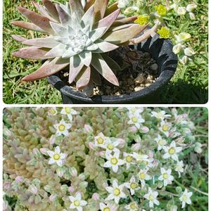 ⬆️ダドレア グリーニーのお花が咲きました🎵 あまり目立たないけど、頑張って咲いています。😆 ⬇️まるぞう♪さんからいただいたマジョールさんも、可愛いお花をたくさん咲かせています。😄✨ 頑張ろう❗日本‼️ 👊✨