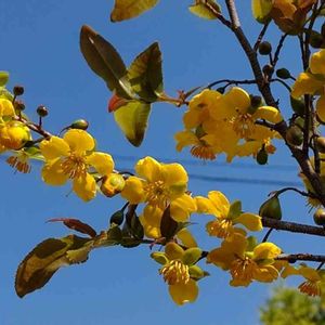 ミッキーマウスの蕾 黄色いお花が咲いてきました。 青空をバックに花が冴えてます。 そうでも無いかな⁉️