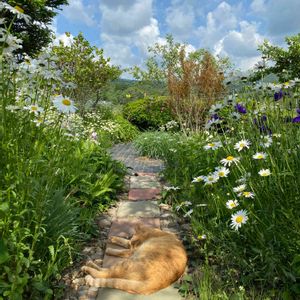 今月も、 みちのすけさんのニャンニャン祭り 参加しまーす😽 庭に寝っ転がるニャンズと、 咲き始めた百日草🌸🌼 これから、100日楽しめるかな☺️