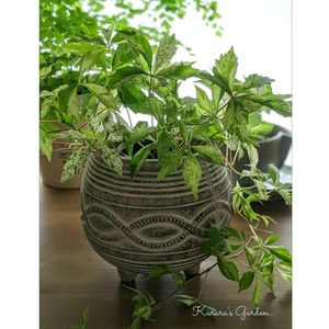 ラベンダーを刈ってしまったので、花のないグリーンの寄せ植えになってしまいました🌿 うちでは1番の爽やかチーム✨ そよ風でも葉先やつるがゆらゆら揺れて、可愛らしく踊っています♬♩♪ 🌱斑入りセリ フラミンゴ🦩 🌱斑入りアメリカツタ あら、斑入り同士😆 斑入りセリフラミンゴ🦩は寒くなるとピンクになっていくんですって、楽しみです💕