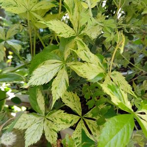 斑入りアメリカヅタ 数年前に落葉後の何もない状態のものを安価で数ポット購入して植付けたんだけど、毎年どれも葉っぱが出てこなくて、いよいよダメかなと。 ダメ元で今年の春先に植え替えたところ、全部こんなにワサワサ! 何がダメだったのかしら… 早く植え替えればよかった😓 斑入りのリーフ、やっぱり素敵❤︎(。☌︎ᴗ☌︎。)