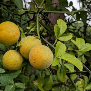 🍁🍂🍁🍂🍁🍂🍁🍂 カラタチの実 💛💛💛 春の白い花も素敵でした 実がなるのも😊 眺める 魅力 笑 ( 食べるには 不可 ) トゲトゲも ア-ト 🍁🍂🍁🍂🍁🍂🍁🍂 残念なのは 散歩みちの 植物 ܾ ܾ 𖥧𓇣𖦥𖥧𖥣 そこに行かなくては 愛でれない 😆!!