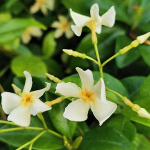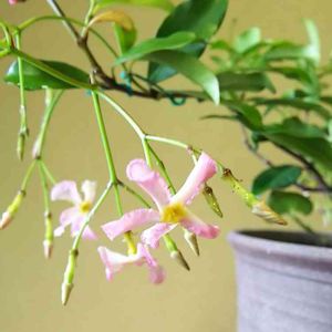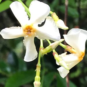 テイカカズラ 鉢植えのテイカカズラが今朝開花してました❗️😀 今年はかなり蔓も伸びて、花芽も沢山ぶら下がってます🎶しばらくはテーブルに置いて楽しみます🎵