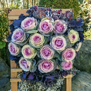 葉牡丹のハンキング💕 年末の最終日に葉牡丹が 1ケース24ポット入がワンコインで お買い得だったので全部使用して ハンキングを作って見ました。😊