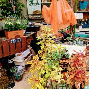 秋色のコリウスの寄植え🌿発見 園芸店内はハロウィンの飾りが あちこちにあり見てて楽しめます。 どこ観てもガーデン雑貨が素敵で 端から端までじっくり1時間見て 帰りました。 1時間あっという間でした🌿