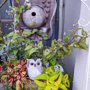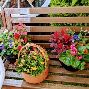 可愛らしい鉢に小花がぎっしりと 植えてある寄植えで素敵でした💐 普通,小さい鉢でしたら 1 ポットしか植えませんが、 1種類ではなく3株以上の 苗を寄植えにすると見栄えがして 豪華な寄植えになりますね。 ホームセンターや園芸店など 色んな寄植えを観て 参考にしてます🌿