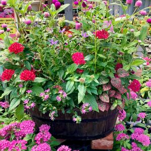 花畑の様な寄植え💐 園芸店にペンタスと千日紅の ピンク系でまとめた素敵な 寄植えがありました😊🌿
