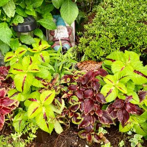 カラーリーフエリアの コリウス達🌿 ひと回り大きくなって きたので、伸びたのを 間引いて、室内で水栽培で 根っこが出るまで育ててから また増やして寄植えに 使う予定です☺️