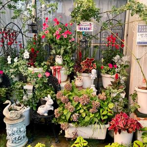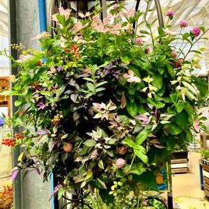 ダイナミックなハンギング🌿 珍しいカラーリーフを ふんだんに使用してあり、 見応えがありました😊 南国の雰囲気でパッと 華やかな感じで素敵でした💕 お気に入りの園芸店にて🌿