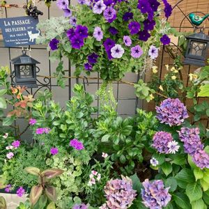 紫系エリアの花達💜 濃い紫のペチュニアが 良く咲いてます😊