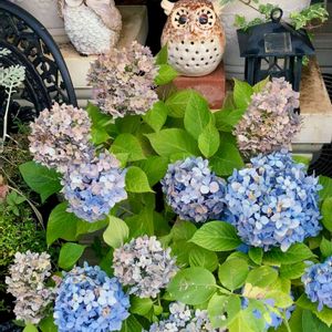 鉢植えで育ててる水色の紫陽花が色褪せてますが、このまま秋まで 楽しみます🐌🌿