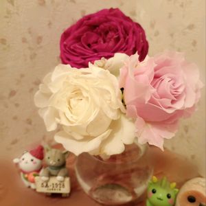 おはようございます🥰 今朝も曇りです☁️そしてこれから明日にかけて雨みたいです😚 このところずっとそんなお天気です🥹 今日は仕事なので、朝のうちに昨日お迎えしたお花たちを植え付けしました😻 昨日お迎えしたのは3〜5枚目のお花たちです💓 ジジは前からサイトとかを見て気になっていて、たまたまスーパーの隣のお花屋さんに2株だけ残っていました🤭即お迎え決定〜😆 来年もこんな風に咲いてくれるのかな〜😅 この前買ったガーデンマムはポンポン咲きの子が咲き終わった後咲いているお花は普通の菊になりました😓 ポンポン咲きにするには何かテクニックがいるのでしょうか…😅 今回お迎えしたバンビオさんは黄色と赤っぽい子にしています。後からピンクのフリフリを追加する予定です😻 1枚目は私の好きなドレッシーとラ・マリエちゃんをカットしたものです。ドレッシーのこの花びらのフリルとコロンとした形をお伝えしたくて…😍💕 愛らしさと上品さが兼ね備わった薔薇さん💗そして香りも素晴らしいですね〜。 ラ・マリエちゃんは私には難しい薔薇で…やっとまともに咲いたお花を見られました😭 左の後ろにいる赤いバラは、前回も投稿したレッドダイヤモンドです。切り花品種だけあって、すごい花もち🤭 2枚目はリラさん🥰 この子も咲かせるのがとても難しい〜😓何やっても駄目ですよ〜😚このお姿がかなり良い状態ですね😻