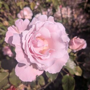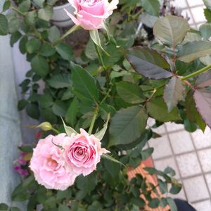 風もなく晴れて穏やかな一日でした☀️ 🌹ラ・マリエ 淡いピンク色🩷きれいに咲いてくれました。 蕾の濃いピンク色もきれい✨ 🌹ラプソディインブルー 小さめだけど、深い紫色がとても良いです💜香りも✨