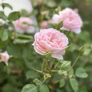 🌹ラ・マリエ 昨年秋に大苗でお迎えしました🪴 ベビーピンクで中央がほんのり色付き清楚でありエレガント💖 ひらひらと波打つ花びらが花嫁さんのベールのよう👰🏻 河本純子さんのバラは花持ちも良く、切り花にも向いているそうです💐 秋の色合いも楽しみです😊