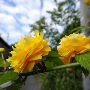 道端 ヤエヤマブキ(八重山吹)、バラ目バラ科ヤマブキ属の落葉低木