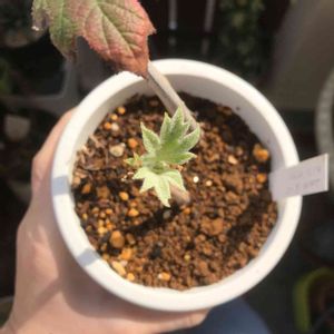 去年剪定した穂をもらって挿し木した カシワバアジサイも春を感じているよう🐝 新芽もふもふ。 紅葉しながらも冬中葉をつけ続けていました。奥の株はまだその葉がついてます〜🍁