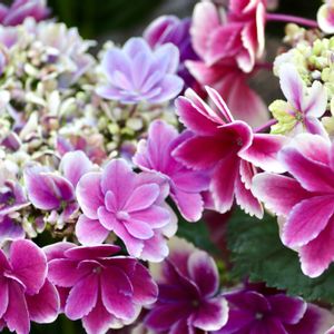 今日のお花 ⁑ アジサイ(紫陽花)🌸#1 アジサイいろいろ… 月虹 ピンク ディープパープル 舞姫 ピンク テマリテマリ ハワイアンジュピター ⚫︎⚪︎⚪︎⚪︎⚪︎