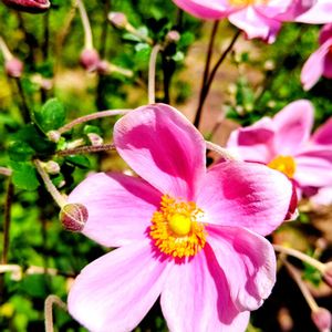 今日のお花 🩷シュウメイギク(秋明菊)🩷 別名 貴船菊(キブネギク) (京都貴船地方で野生化し増えたことから由来) キンポウゲ科 多年草 中国原産 花は8月〜11月 半常緑姓 株やランナーで増えていく 花弁状に見える咢が5枚で大きさは揃っていない(20枚の 品種などもある) 花の形が整ってなくて不恰好に見えるところがとても愛らしいく思えちゃう💞✨❤ 昔の写真より 吉田公園