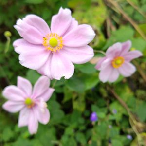 我が家の薄桃色の秋明菊と、お出かけ先の花達 八重咲きピンクの花が一重になり、群生も発見
