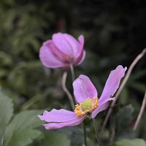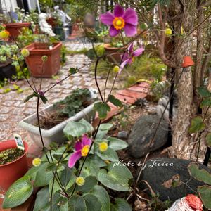 今日のお花⸝⸝⸝♡ ꕤ.。シュウメイギク。.ꕤ 日当たり悪い所に地植えしたピンクの秋明菊は、ダイアナと桃色ブーケ💗どっちがどっちか…•́ω•̀)? 今年も細々しく咲いてますෆ.*・゚ けどこの形、このお色、めっちゃ可愛いです🥰 最後のpicは、鉢植えの八重咲き秋明菊の白花🤍 お花ちっちゃい⋆⸜ ⚘ ⸝⋆ 雨の週末☔️風邪ひかないようにね🍀.*