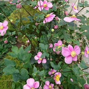 今朝の出逢い花🎵 ピンクのシュウメイギク(秋明菊)🌼 愛らしい💕可愛い花💠 どの色の花も雄しべがくっきり黄色 花言葉は色別ないので 白と同じでせつない感じです さんざん会いたくて探していたのに お隣の裏庭に咲いていました🎵 また明日も会えて嬉しいな❤