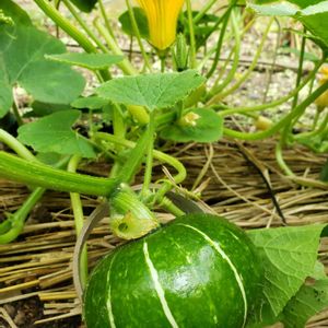 おはようございます😃 カボチャ🎃の2個目が実りました❣️ プランター栽培なので実を付けさせるのは2個までにしておこうと思います。 どこまで大きく育つか楽しみです🤭