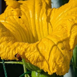 かぼちゃの花 綺麗❗カボチャでまたまた困りました😅 雄花ラッシュ→雌花ラッシュ 開花が一緒ではなく受粉に困り 新たに激安カボチャ苗(雄花沢山あり)を買いましたが、今度は雌花がぱったり😭カボチャに振り回されてます(笑)