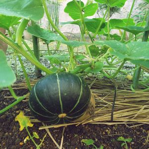 (母No.153)全国1位にほぼ同じ暑さ🥵グリーンでは涼めないですね🙏💦実家に3畳程の畑があります♡思えば野菜の投稿無い😅初めてチャレンジのカボチャ🎃がなったって💕母が嬉しくて写真送って来ました♡虫さんに食べられませんように🙏💕 皆さんボチボチで🙏コメントもゆっくりですがお返事しまーす‼️