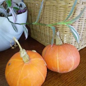 ミニカボチャ🎃栗坊 10/10朝、生まれて初めてのミニカボチャ🎃ベランダプランター空中栽培で長い悪戦苦闘のうえやっと…やっと2個、収穫出来ました😅✌️💦😂